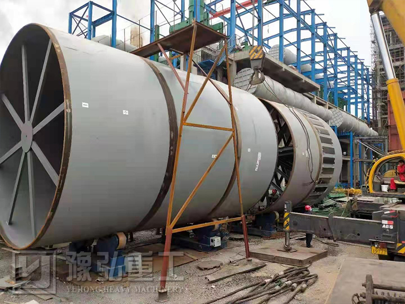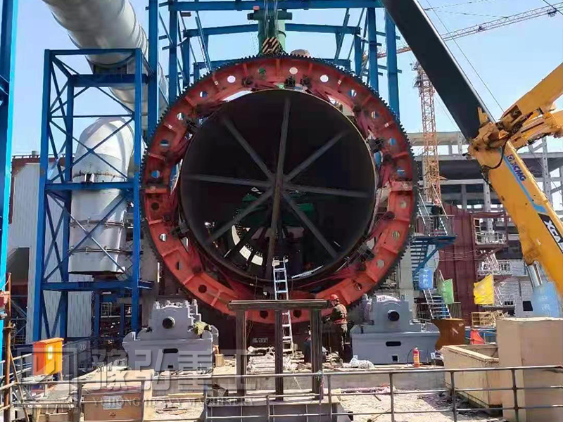 物料通過斜槽將從氣室送入窯尾。由于窯筒體是傾斜的,且輕微旋轉(zhuǎn),物料在筒體內(nèi)沿周向翻滾的同時,沿軸線由窯尾向窯頭移動。經(jīng)過預(yù)熱處理,分解,煅燒,物料將被送入冷卻器。在窯頭,燃料將通過天然氣或煤炭燃燒器方式,在窯內(nèi)被燃燒。熱量通過火焰輻射、熱氣流、耐火轉(zhuǎn)傳熱傳遞給物料。熱量足夠加熱和煅燒物料,并使其成為最終產(chǎn)品。